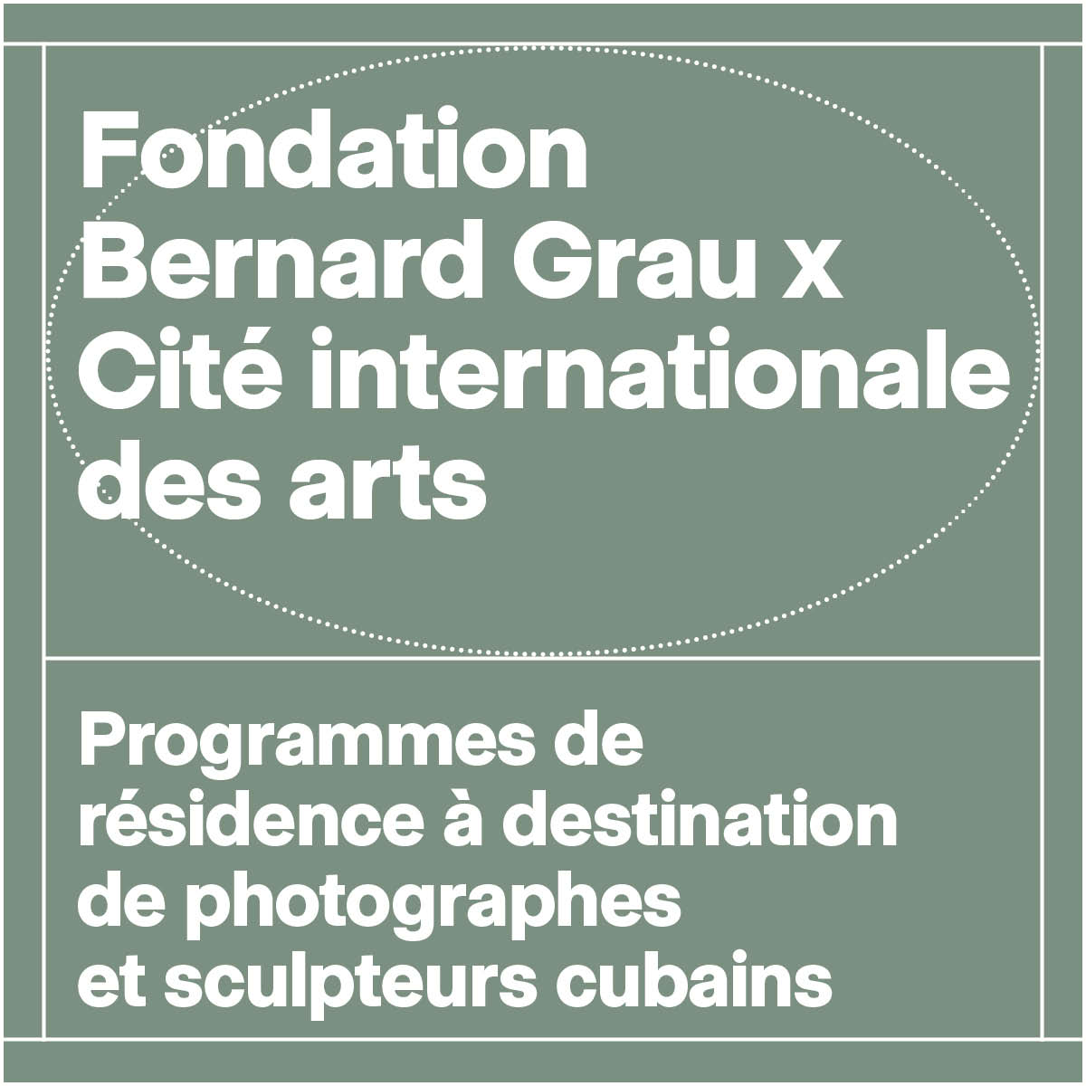 La Fondation Bernard Grau–Académie des beaux-arts, qui a pour objectif de soutenir la scène artistique cubaine et d’en promouvoir la vitalité, s’associe à la Cité internationale des arts pour mettre en place un programme de résidence à destination des créateurs cubains pratiquant une discipline correspondant à une section de l’Académie des beaux-arts (Peinture, Sculpture, Architecture, Gravure et dessin, Composition musicale, Membres libres, Cinéma et audiovisuel, Photographie, Chorégraphie). Depuis 2023, ont été mises à l’honneur les sections Peinture, Architecture, Gravure et Dessin, Composition musicale et Chorégraphie.