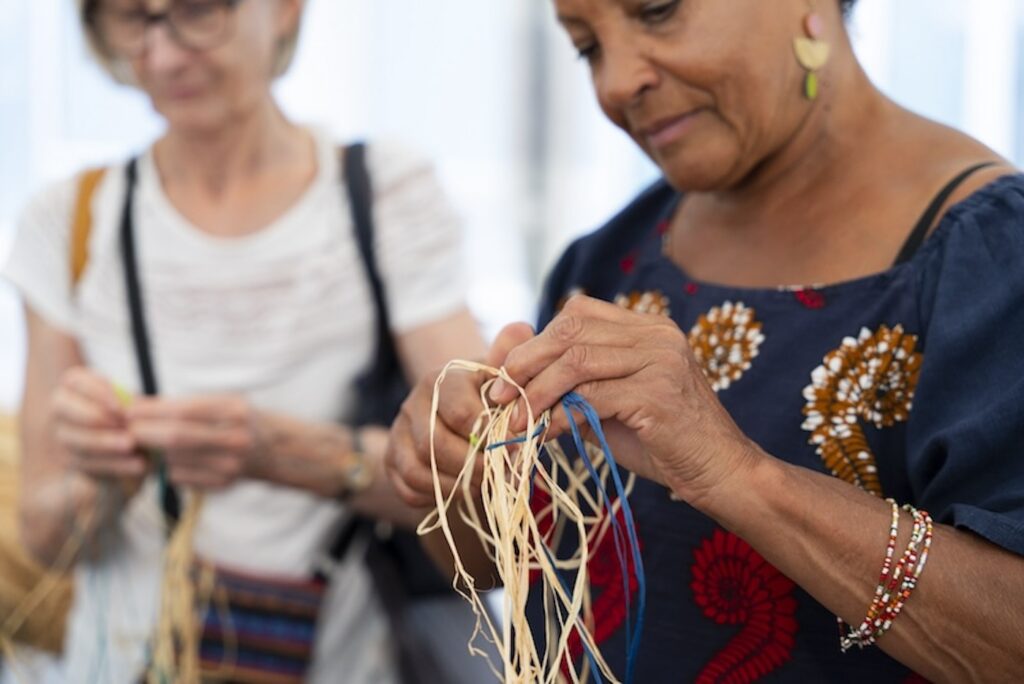 Basketry workshop by Jayne Christian during the festival Les Traversées du Marais, Re-tisser in October 2023. Cité internationale des arts © Maurine Tric / Adagp, Paris 2023"