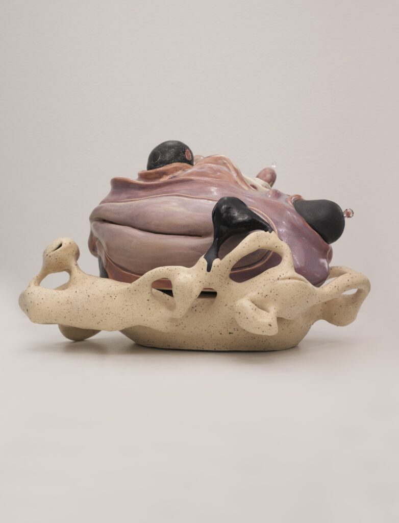Ces céramiques évoquent des corps sous des états de partialité, des formes qui semblent émerger, se rétracter ou pivoter vers d’autres anatomies, comme si chaque fragment testait les limites de ce qu’un corps peut supporter. Elles renferment le paradoxe de l’autonomie et de la contrainte : une volonté de métamorphose tempérée par les limites de la chair. À travers l’abstraction, elles distillent des résidus émotionnels : désir, aliénation, ambivalence et créent des champs perceptifs où la forme se dissout. Ensemble, les œuvres construisent un terrain où l’incarnation des corps n’est ni fixe ni entièrement fluide, mais façonnée par des pressions sociales, psychologiques et matérielles.