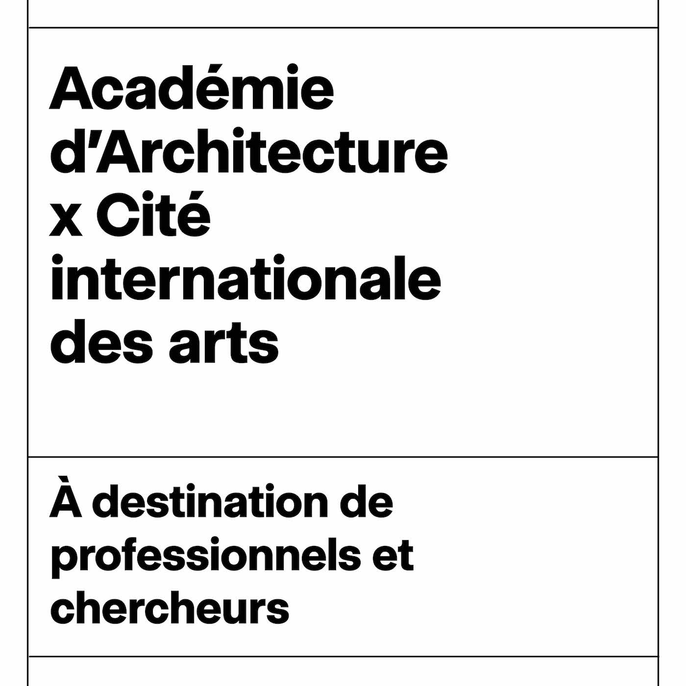 Chaque année, le programme Académie d’architecture x Cité internationale des arts donne l’opportunité à une dizaine de professionnels et de chercheurs de tous pays, dont les travaux portent sur l’architecture, l’urbanisme, le patrimoine et l’espace en général de venir en résidence à la Cité. Ce programme vise à soutenir leur carrière en leur permettant de développer un projet personnel et de tisser des liens dans le cadre multiculturel de la Cité internationale des arts.