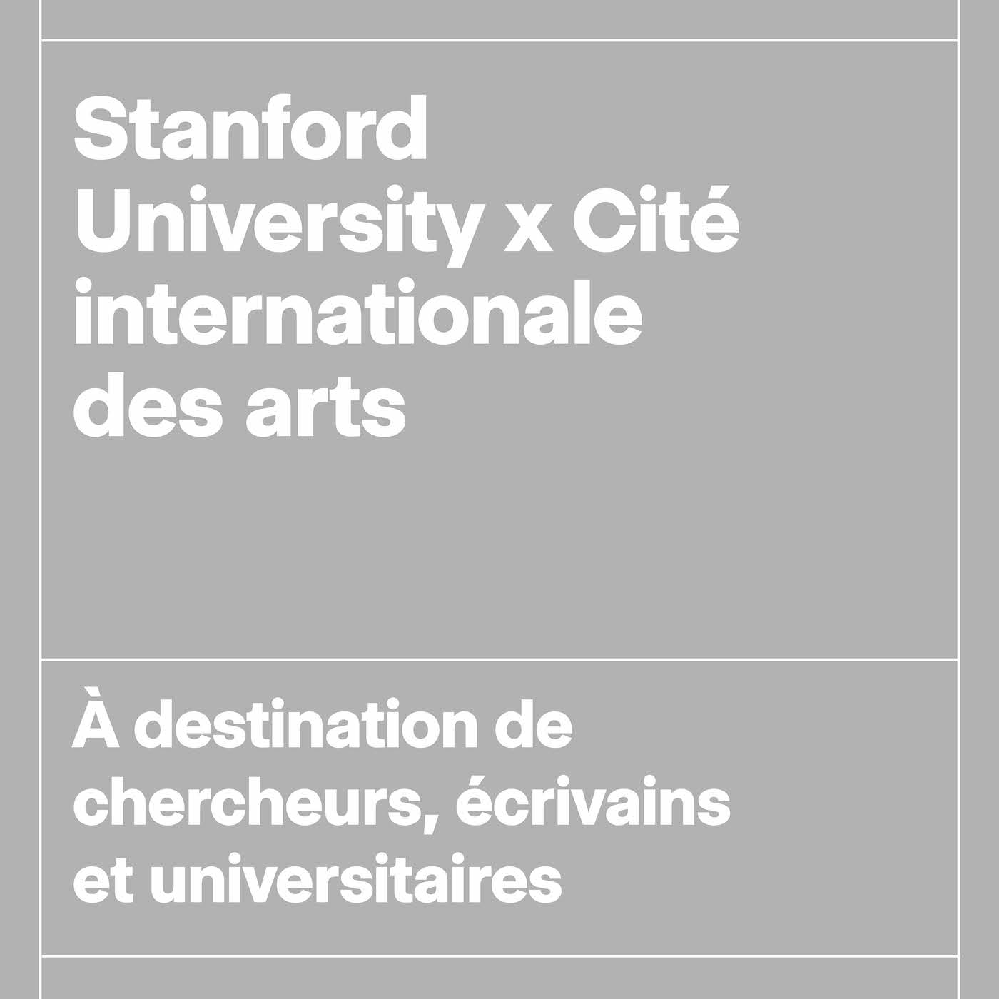 Le programme Stanford University x Cité internationale des arts permet à des chercheurs, écrivains ou universitaires de venir en résidence à la Cité pour une période allant jusqu’à 4 mois. Il s’adresse à des membres de l’université de Stanford et offre l’opportunité de développer des projets de recherche qui s’inscrivent dans les domaines des arts et de l’histoire de l’art, de l’écriture créative, de la musique, du théâtre et des performances, des littératures, des cultures et des langues (français).