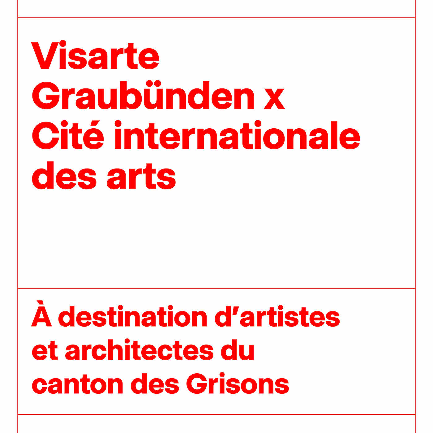 Le programme Visarte Graubünden x Cité internationale des arts permet chaque année à 2 à 4 artistes (de toutes disciplines) et à des architectes de venir en résidence à la Cité pendant 3 à 6 mois.